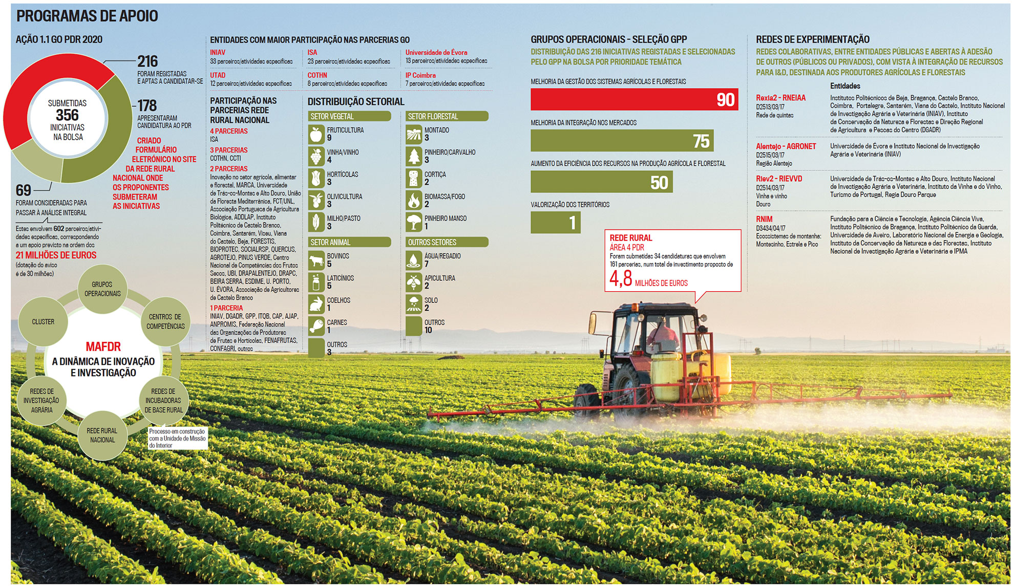 A dinâmica da inovação e investigação, entidades com maior participação nas parcerias dos Grupos Operacionais e Redes colaborativas.