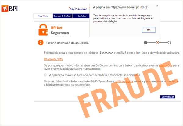Caso se depare com uma página semelhante, não forneça qualquer informação e contacte de imediato os nossos serviços através do 800 200 102 (Território Nacional) ou +351 21 720 77 61 (Estrangeiro).