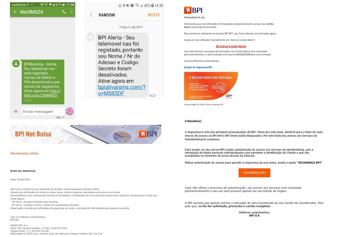 Foram identificados alguns SMS e e-mails fraudulentos que aparentam ser enviados pelo Banco BPI, que terão como objetivo a obtenção ilícita de dados pessoais para posterior utilização fraudulenta.