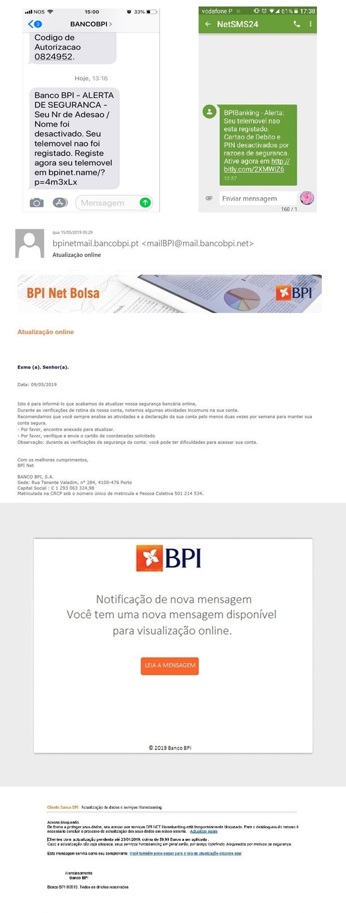 Se receber um SMS e/ou e-mail semelhante a estes exemplos não dê seguimento a qualquer pedido e apague-o de imediato, não dando seguimento a qualquer pedido indicado no SMS.